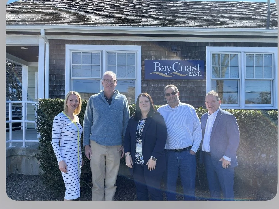 George Goulart (second from right), chairman of LC350, meets with Bay Coast Bank who is sponsoring the Family Day event being planned by the organization for Saturday, August 10th. Others from Bay Coast Bank (from left) are Kimberly Grandfield, Scott Morrison, Xenia Ledoux, George Goulart, and Matthew Payette.